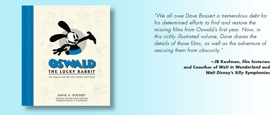 “We all owe Dave Bossert a tremendous debt for his determined efforts to find and restore the missing films from Oswald’s first year. Now, in this richly illustrated volume, Dave shares the details of those films, as well as the adventure of rescuing them from obscurity.”