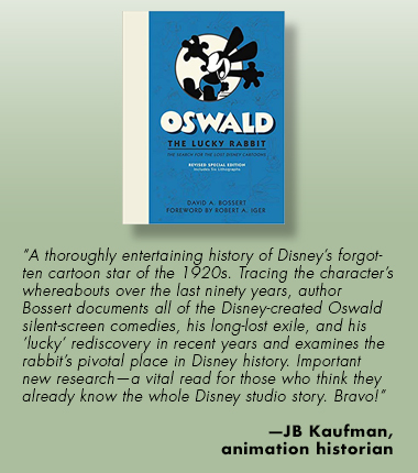 “A thoroughly entertaining history of Disney’s forgotten cartoon star of the 1920s. Tracing the character’s whereabouts over the last ninety years, author Bossert documents all of the Disney-created Oswald silent-screen comedies, his long-lost exile, and his ‘lucky’ rediscovery in recent years and examines the rabbit’s pivotal place in Disney history. Important new research—a vital read for those who think they already know the whole Disney studio story. Bravo!”