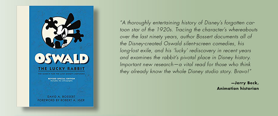 “A thoroughly entertaining history of Disney’s forgotten cartoon star of the 1920s. Tracing the character’s whereabouts over the last ninety years, author Bossert documents all of the Disney-created Oswald silent-screen comedies, his long-lost exile, and his ‘lucky’ rediscovery in recent years and examines the rabbit’s pivotal place in Disney history. Important new research—a vital read for those who think they already know the whole Disney studio story. Bravo!”